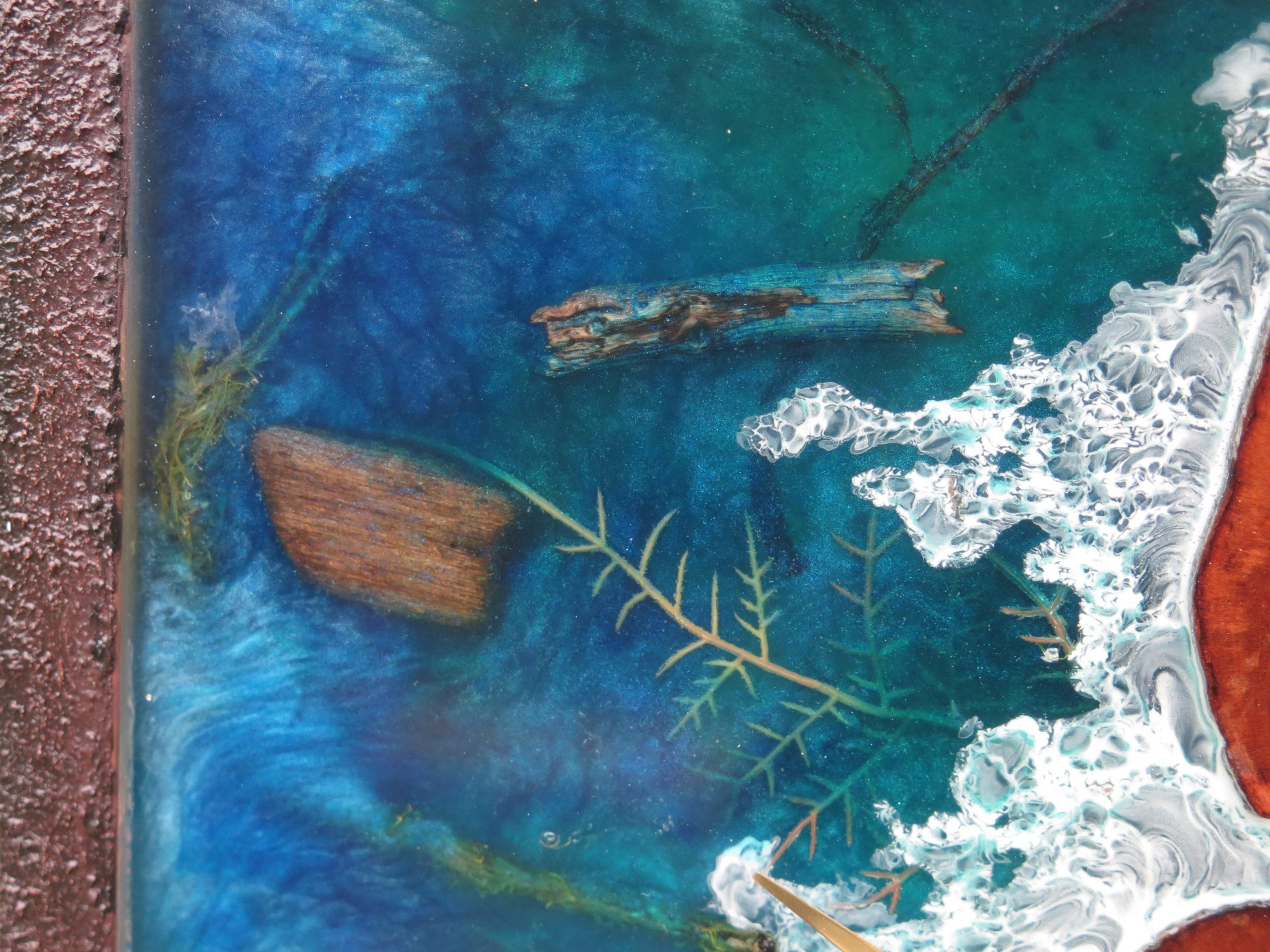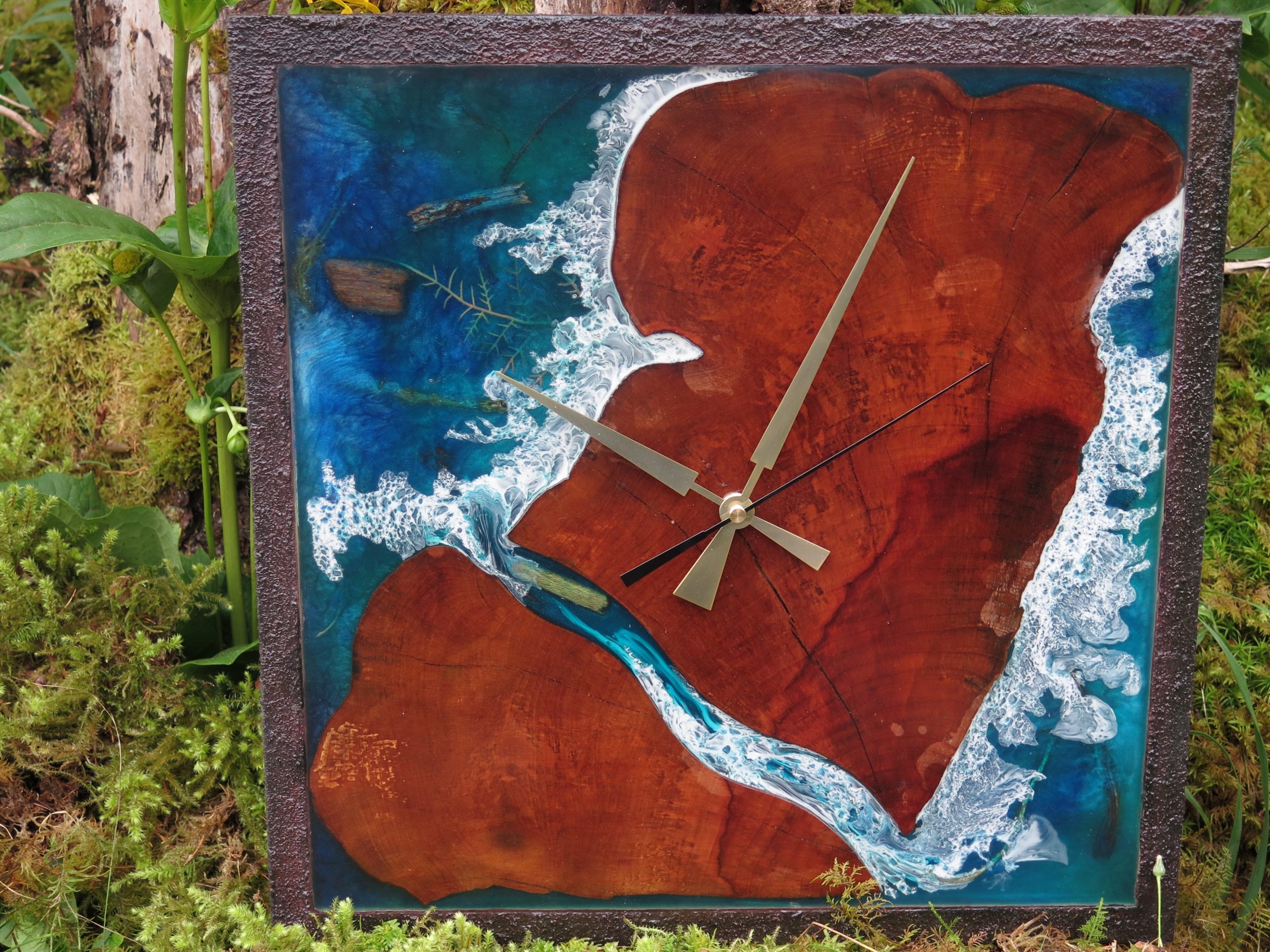 Handgefertigte Epoxidharz-Uhr aus Kirsche mit Meeresprise