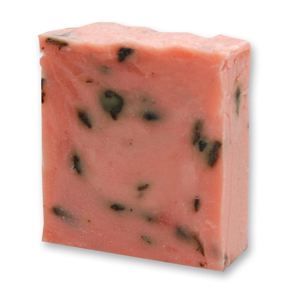 Mit Kokosöl, Olivenöl, Glyzerin, Lanolin, Rosenblüten und biologischer Schafmilch