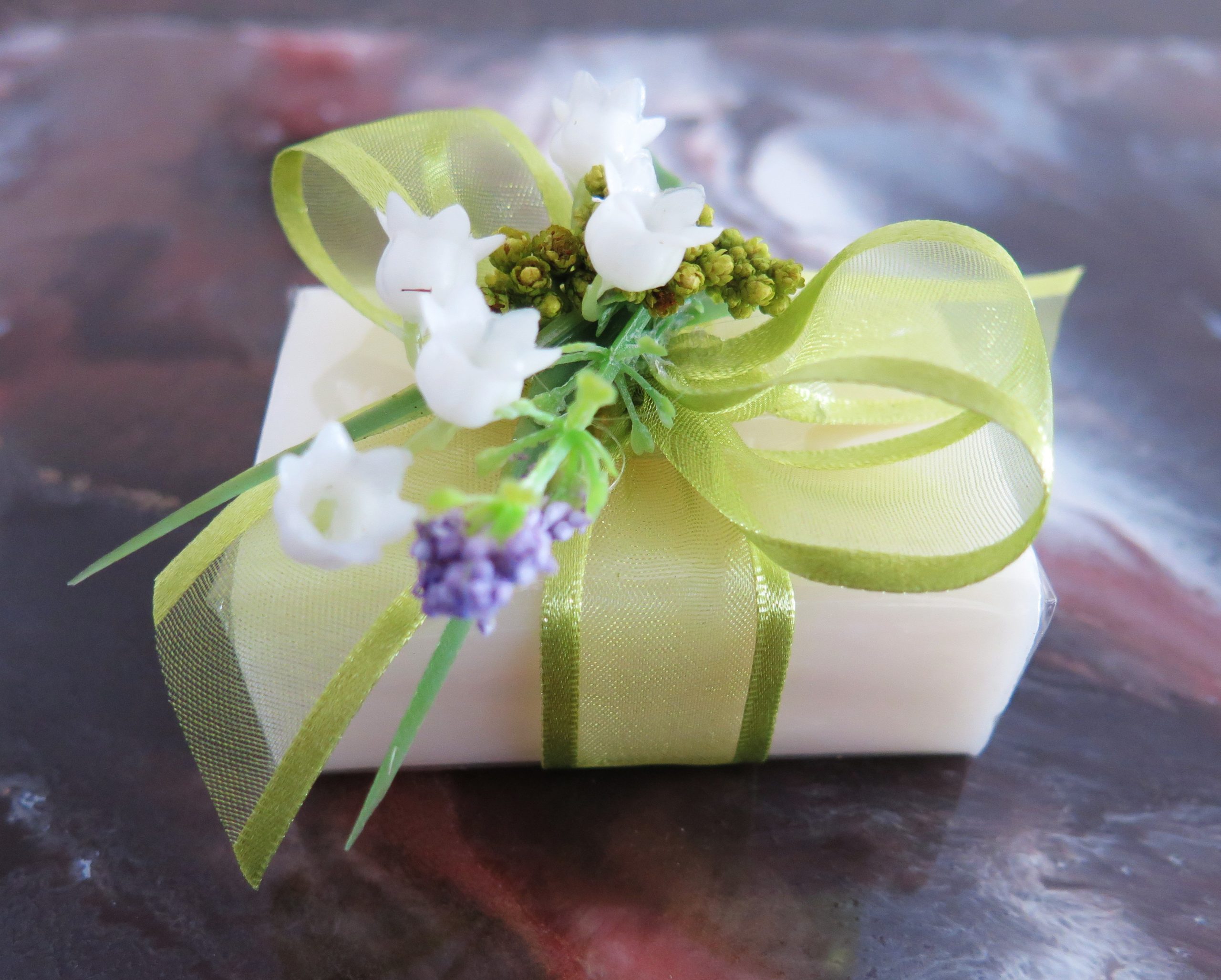 Schafmilchseife eckig, Maiglöckchen 100 gr. mit Dekoration „Maiglöckchen“